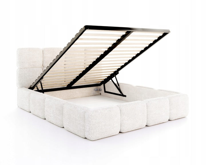 Łóżko Galio Baranek to doskonały wybór dla osób, które szukają wyjątkowego połączenia estetyki i funkcjonalności. Jego tapicerka o strukturze „baranka” nadaje mu niepowtarzalny wygląd i modny charakter, dzięki czemu świetnie wpisuje się w trendy i stanowi prawdziwe nowoczesne łóżko do sypialni.