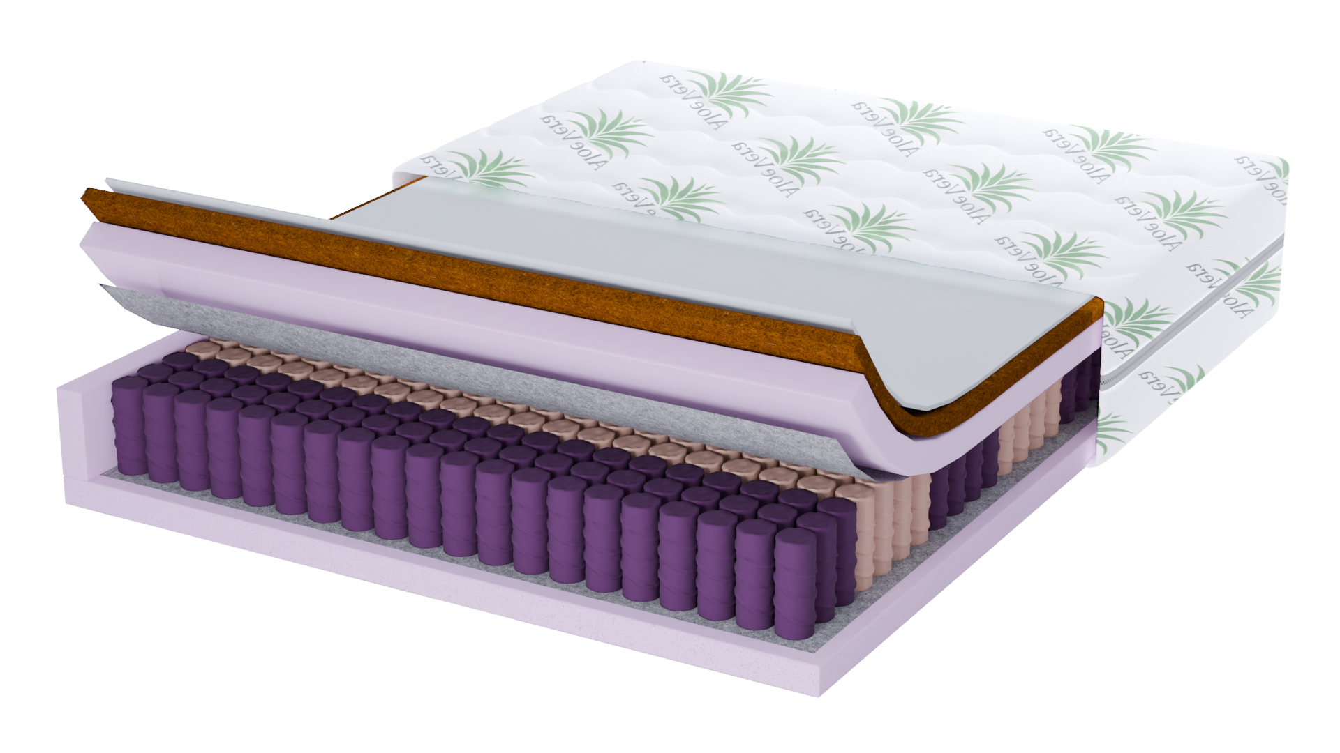 ALORES to materac dwustronny, co pozwala na rotację stron użytkowych, wydłużając jego żywotność i umożliwiając dopasowanie twardości do indywidualnych potrzeb. Całość dopełnia pokrowiec Aloe Vera, który ma właściwości antybakteryjne i kojące – wspiera skórę oraz utrzymuje świeżość przez całą noc.